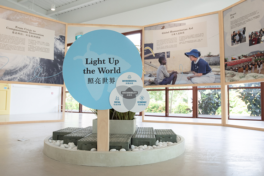 "Light up the World" zone consists of two sets of content: (1) Tzu Chi's disaster relief principles adhered to by volunteers amid international disasters and humanitarian crises triggered by climate change and (2) Tzu Chi's accumulation of experience in disaster relief, which has led to the research and development of technological products that meet the requirements of environmental, social, and economic sustainability. (Photo by Wong Twee Hee)